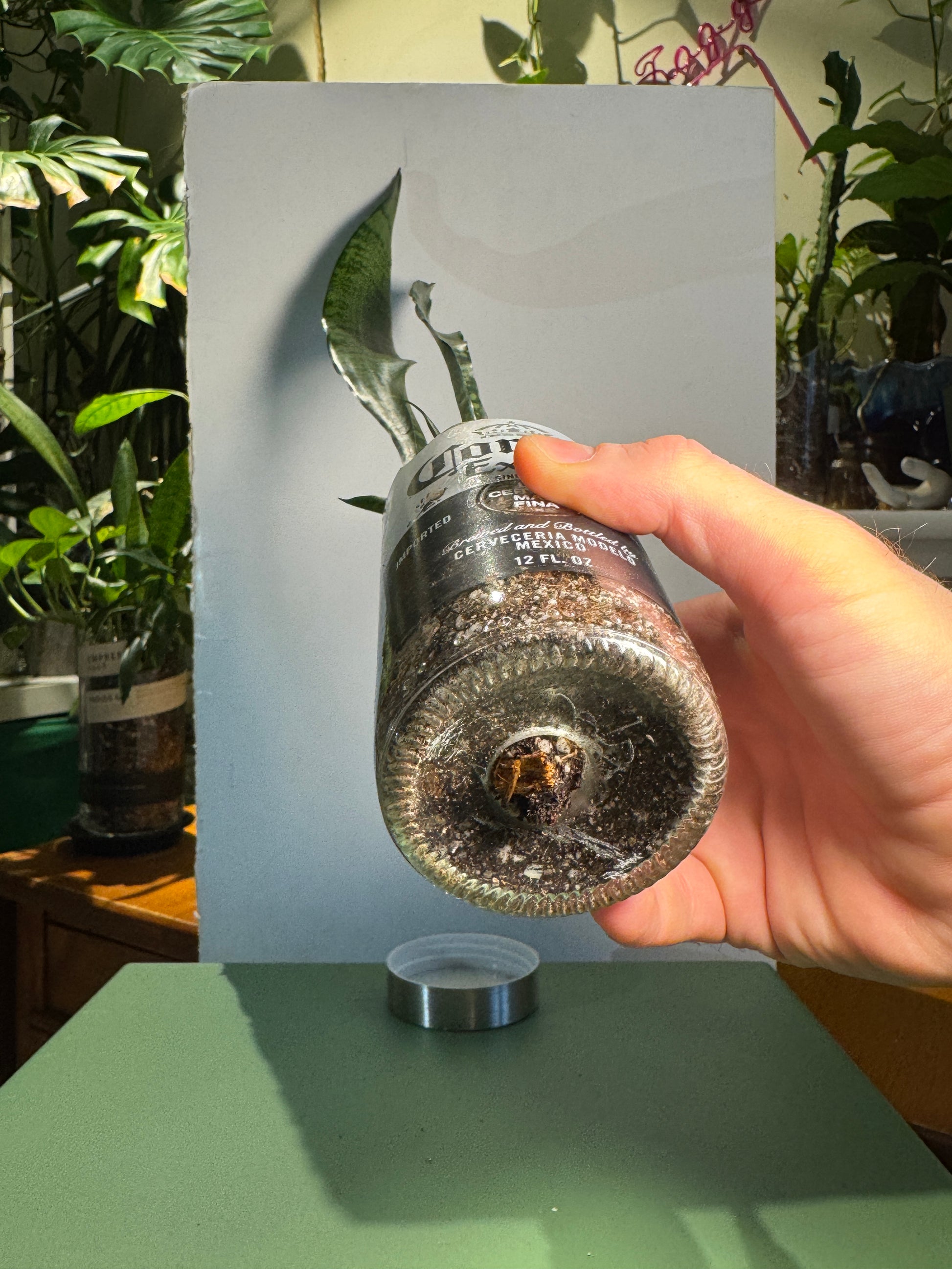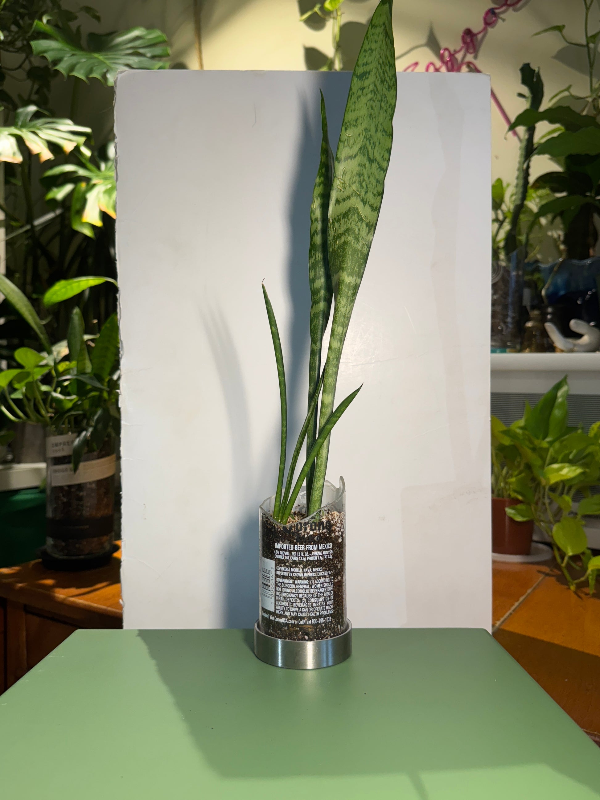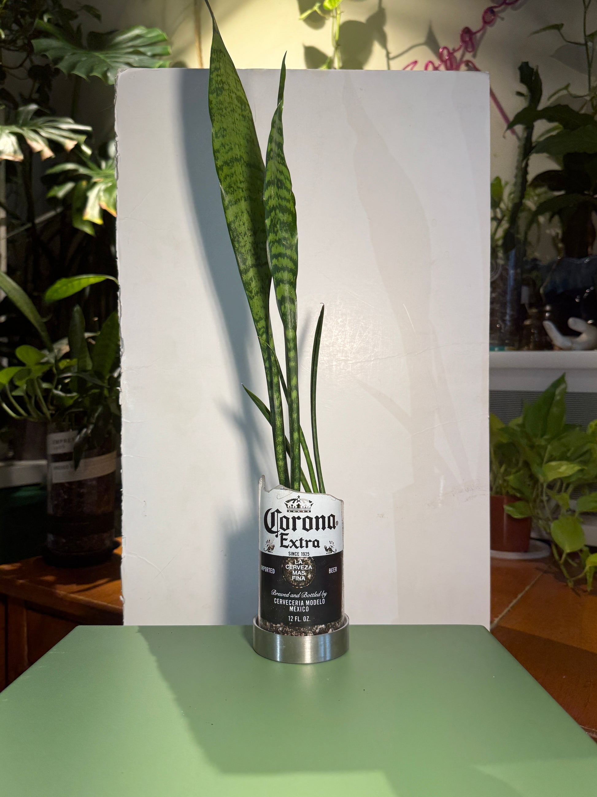 Upcycled Corona Extra bottle featuring Snake Plant, Fernwood Snake Plant